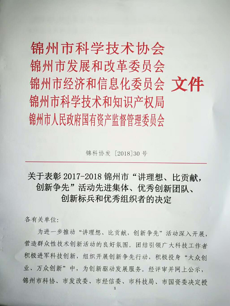 【荣获2017-2018锦州市“讲理想、比贡献,创新争先”活动“先进集体”称号】