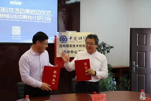 活动期间锦州市科技局副局长张继光、中科院沈阳分院科技合作处郝思文、太和区副区长谢丽、太和区教育和文化旅游局局长毕强为“中国科学院沈阳国家技术转移中心锦州中心太和工作站”揭牌,此工作站依托辽宁万众科技大市场开展技术转移、产业孵化及成果转化工作。
